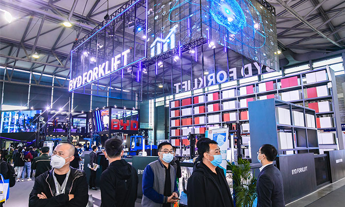 項目名稱:2023第23屆亞洲國際物流(CeMAT ASIA)運輸系統展覽會 舉辦地點:上海新國際展覽中心 合作企業:比亞迪叉車 面積:640㎡展位搭建